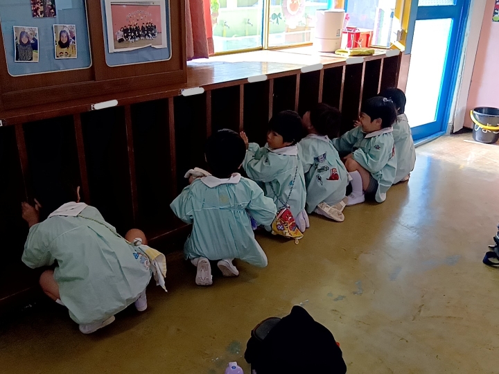 地震が起きたことを想定して、避難訓練をしました。その後、保護者の方の引き取り訓練も行いました。いつ起こるか分からない災害に備えて、繰り返し様々な訓練をしていきたいと思います。