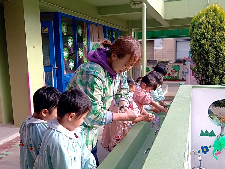 これからは、感染拡大を少しでもゼロに近づけるため、今までとは違う様式を色々と取り入れてまいります。分散保育、時間差での降園など、保護者の皆様にもご協力いただきながら、子どもたちの健やかな成長を願って保育を始めました。
