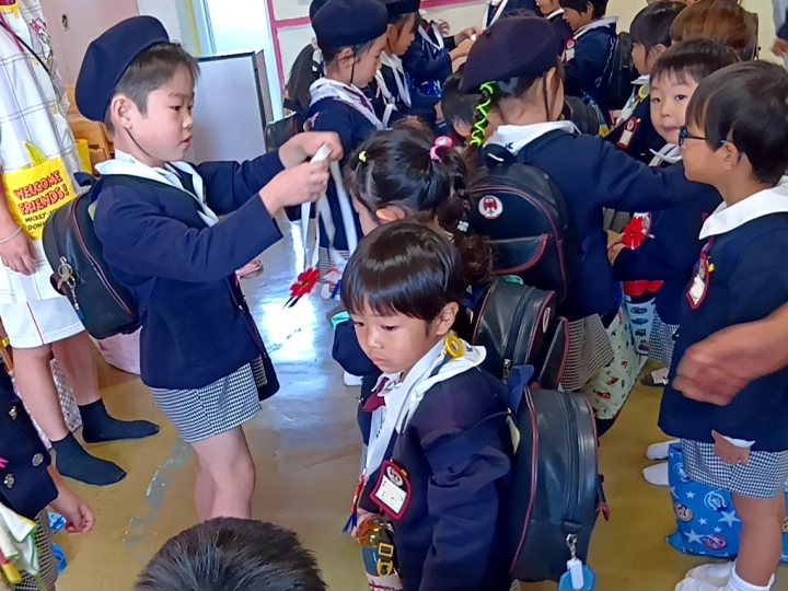 先生のお話を聞いてから、みんなで園歌を歌いました。