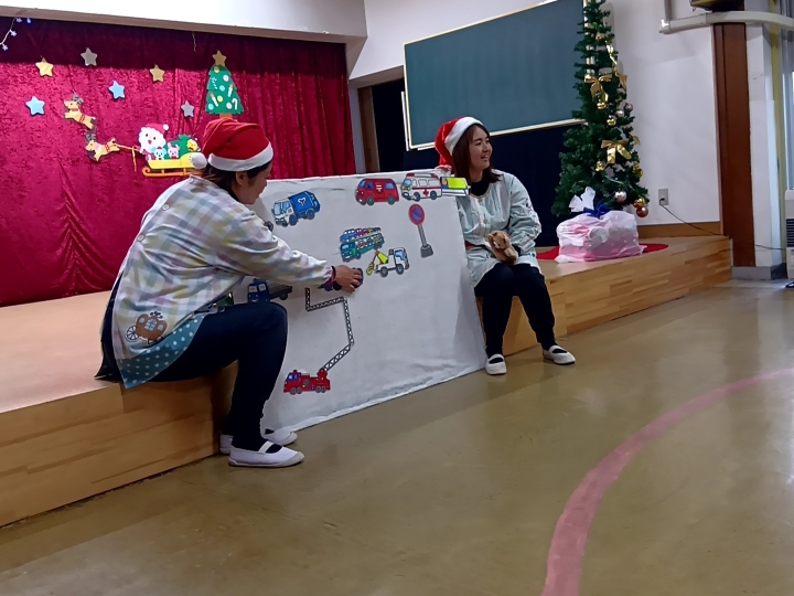 日頃歌っているお得意の歌を聴いていただきました。また、折り紙で作ったお土産をプレゼントしましたが、お年寄りの皆さんからも、折り紙の素敵なプレゼントをいただきました。