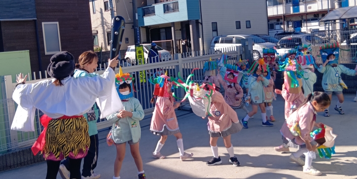 鬼がやってきたので、子どもたちは大騒ぎでしたが